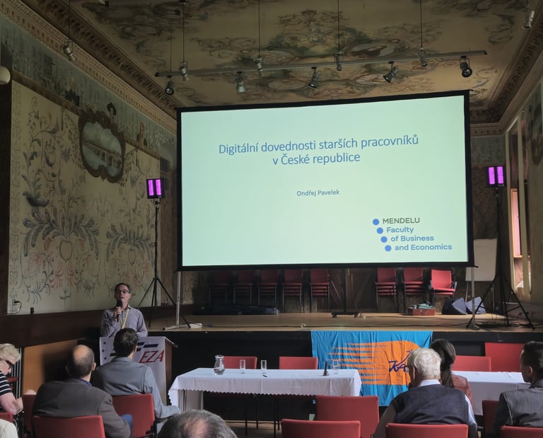 During his presentation, Ondřej not only shared the project’s latest results but also introduced the training courses developed within EDSAW, designed to enhance the digital and soft skills of the ageing workforce.